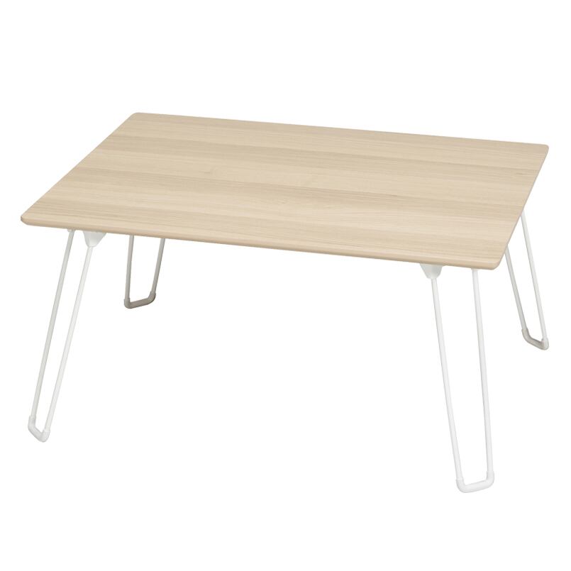 折りたたんで収納可能、天板の裏面も木目仕様です。