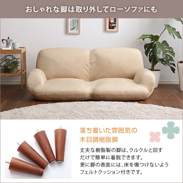 落ち着いた雰囲気の木目調樹脂脚を取外せばローソファに♪