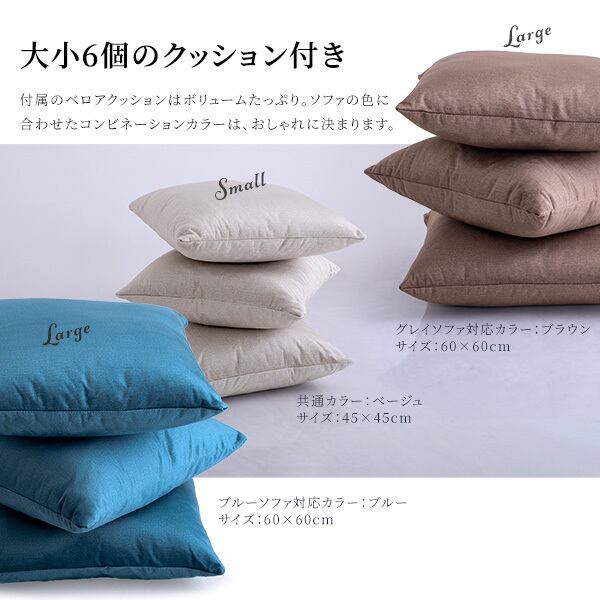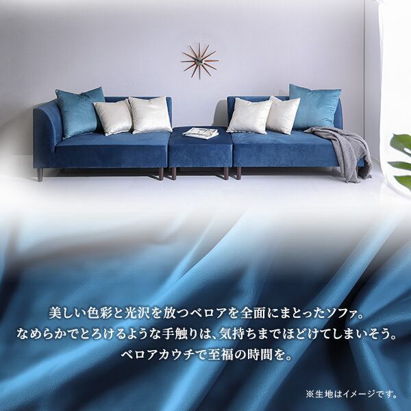 クッション付き 組み替え可能なベロアカウチソファ【VELUURI ベルーリ】