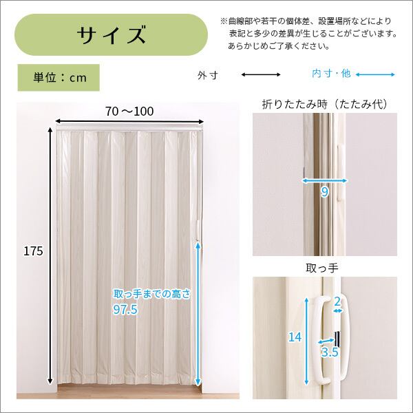 つっぱり式の木目調アコーディオンドア 100×175cmサイズ!